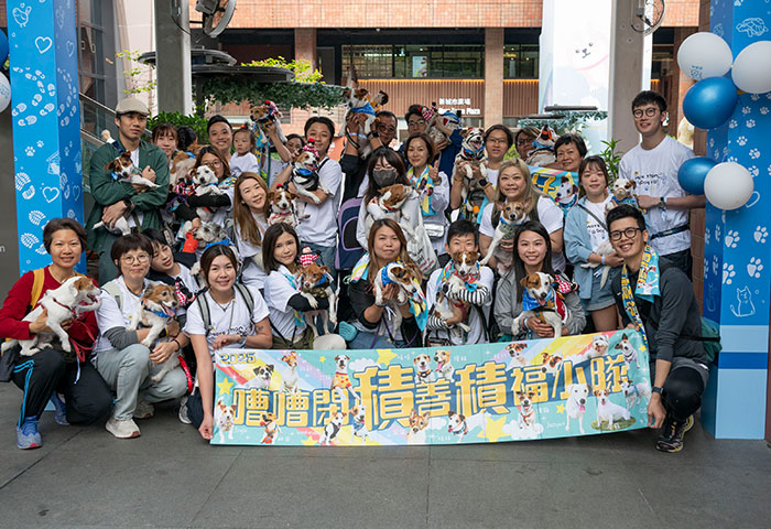 慈善步行參加者完成後(包括狗狗)
